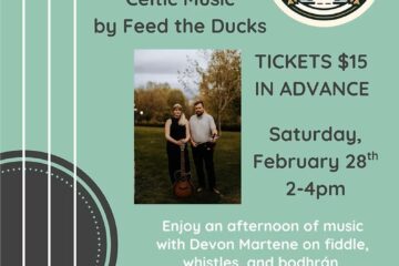 Join us for a Kitchen Party! Celtic music by Feed the Ducks. Enjoy an afternoon of music with Devon Martene on fiddle, whistles, and bodhrán and Becky Van Harn on guitar and vocals. Tickets $15 Read more…